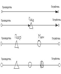 • Посредники ― это фирмы, помогающие компании в продвижении, сбыте и распространении ее товаров среди клиентуры. К ним относятся торговые посредники, фирмы-специалисты по организации товародвижения, агентства по оказанию маркетинговых услуг и кредитно-финансовые учреждения.