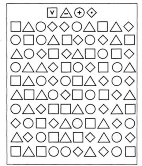 Конкретные задания, используемые для проверки уровня развития наглядно-образного мышления, в данной методике взяты из известного теста Равена. Они представляют собой специальным образом подобранную выборку из 10 постепенно усложняющихся матриц Равена