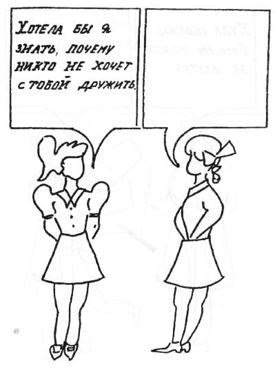 «На картинке изображены два персонажа. Представь, что те слова, которые говорит родитель, учитель или сверстник, обращены к тебе. Что бы ты ответил ему в данной ситуации? И потом, форма ответа может быть одна, а чувства ты можешь испытывать другие, не совпадающие с формой ответа. Поэтому напиши свой возможный ответ, а в скобках то, что ты при этом чувствовал».
