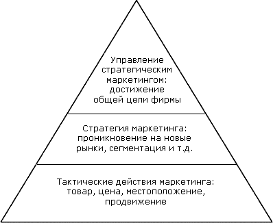 Наконец, самый нижний уровень в стратегической пирамиде - это тактические действия маркетинга, которые можно предпринять для поддержки маркетинговой стратегии. Эти действия включают управление такими факторами комплекса маркетинга, как продукт, его цена, распределение и продвижение на рынке [10, C. 92].