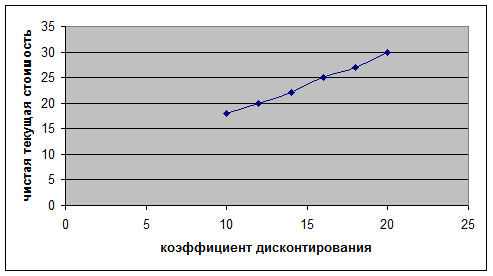 Изобразите графически зависимость чистой текущей стоимости от коэффициента дисконтирования.
