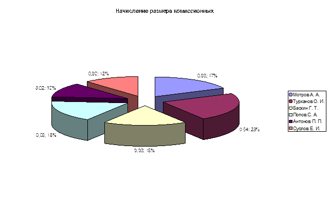 Теперь построим по тому же принципу круговую диаграмму, где отразим начисления размера комиссионных. Получилось: