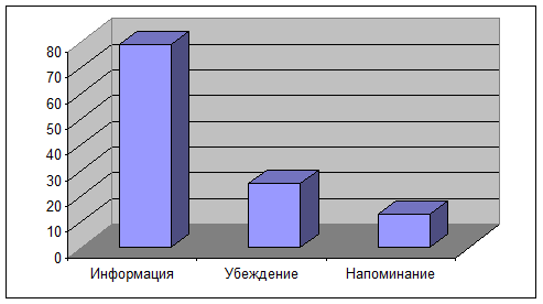 – информационная (доведение до сведения аудитории информации о фактах и событиях, имеющих место в жизни общества). Это, как правило, оперативная информация репортажного, новостного характера;