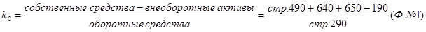 1. Коэффициент обеспеченности собственными оборотными средствами, который определяется по формуле: