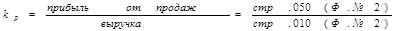 Рентабельность продаж показывает размер прибыли от основной деятельности, приходящийся на 1 рубль выручки, и характеризует прибыльность основной деятельности организации (эффективность управления).