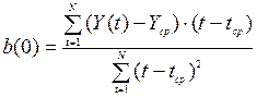 Метод наименьших квадратов дает возможность определить коэффициенты линейного уравнения a(0) и b(0) по формулам (6-9):