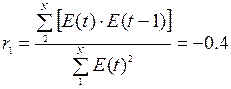 Если модуль рассчитанного значения первого коэффициента автокорреляции меньше критического значения | r1 | < rтаб , то уровни ряда остатков независимы. Для нашей задачи критический уровень rтаб = 0,32. Имеем: