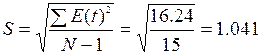 Будем считать, что условие точности выполнено, если относительная погрешность (абсолютное значение отклонения abs{E(t)} поделенное на фактическое значение Y(t) и выраженное в процентах 100%*abs{E(t)}/Y(t) ) в среднем не превышает 5%. Суммарное значение относительных погрешностей (см. гр.10 табл.1) составляет 34,90, что дает среднюю величину 34,90/16 = 2,18%.