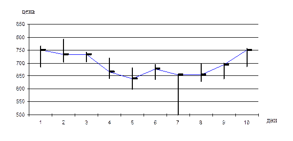 L5 и H5 – минимальная и максимальная цены за 5 предшествующих дней, включая текущий (в качестве интервала может быть выбрано и другое число дней).