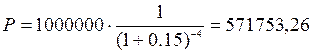 8. Через 4 года предприятию будет выплачена сумма 1 000 000 руб. Определить ее современную стоимость при условии, что применяется сложная процентная ставка 15% годовых.