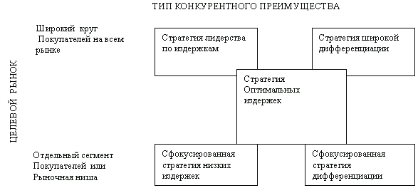 3. Стратегия оптимальных издержек дает возможность покупателям получить за свои деньги большую ценность за счет сочетания низких издержек и широкой дифференциации продукции. Задача состоит в том, чтобы обеспечить оптимальные (самые низкие) издержки и цены относительно производителей продукции с аналогичными чертами и качеством.