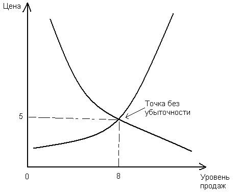 6) Графически изобразить прибыль при различных уровнях продаж. Найти точку безубыточности.
