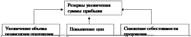 Резервы увеличения суммы прибыли определяются по каждому виду продукции. Основными их источниками являются увеличение объема реализации продукции, снижение ее себестоимости, повышение качества товарной продукции, реализация ее на более выгодных рынках сбыта и т.д. (рис. 5).[10]