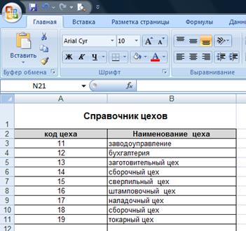 - справочник цехов: служит для расшифровки кодов подразделений;