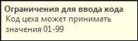 - код цеха: контроль на диапазон значений от 01 до 99;