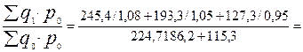 в) Icтр = Iпс/ I псс = 0,964/0,95 = 1,015. За счет изменения структуры средняя себестоимость продукции увеличилась на 1,5%.