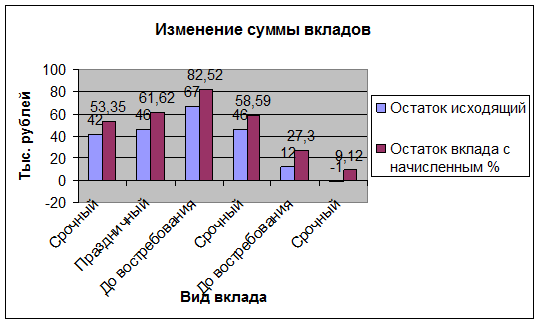 Ряд – Вид вклада, остаток исходящий, Остаток вклада с начисленным %.