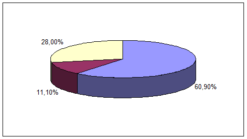 Так, синий цвет отражает статистику 2002 года (60,9%), красный – 2003 года (11,1%), желтый – 2004 года (28%).