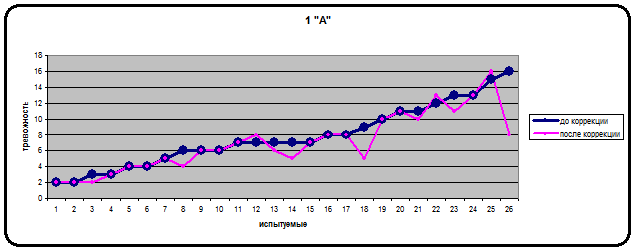 Приложение 65. 1 «А» «ТЕСТ ШКОЛЬНОЙ ТРЕВОЖНОСТИ ФИЛЛИПСА» (общий результат по тесту)