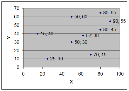 На рисунке1 отражено расположение всех магазинов в соответствии с их координатами.