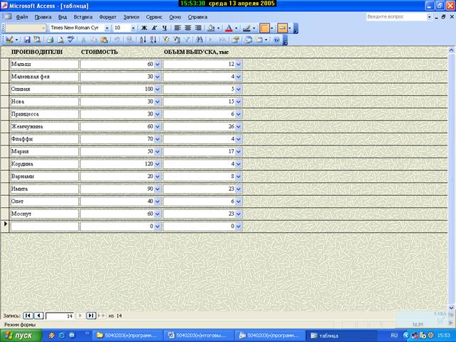 таблица Запрос |