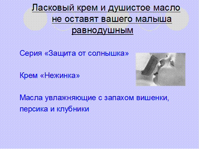 Еще совсем недавно, рынок детской косметики особым разнообразием не отличался, а самой известной из зарубежных марок была косметика Johnson baby, которая широко рекламировалась. Наши мамы, следуя опыту бабушек, покупали знакомые еще с советских времен, детские кремы в алюминиевых тюбиках, детское мыло в бумажной упаковке «Мыло детское, ясельная группа» и присыпку. Наш украинский рынок особым разнообразием не отличался, и мало кто знал, что существует множество косметических линий за рубежом, средств по уходу за малышами, а уж тем более, не подозревали о таких понятиях, как «детские салфетки», «защитный крем под подгузники, от мороза, или неблагоприятной погоды», «пенка для ванн» и пр.