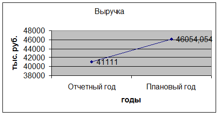 Как видно из рисунка 4, в плановом году в организации выручка вырастет с 41111 до 46054,054 тыс. руб. или на 12 %.