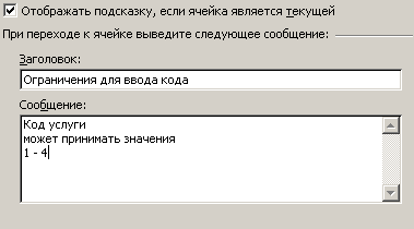 13. Организуйте проверку данных в графу «Код услуги» с выдачей сообщения об ошибке.