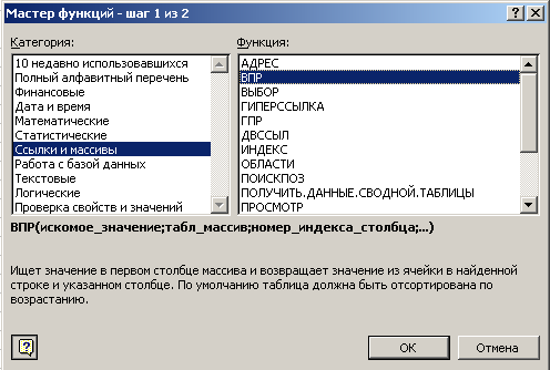 · в поле «Функция:» выберите «ВПР» (рис. 11);