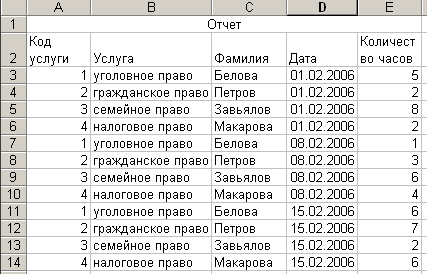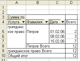 Рис. 17. Фильтрация данных по полю «Услуга»