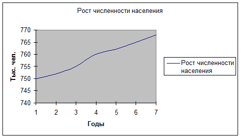 Изобразим динамический ряд роста численности населения графически: