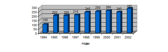 Рис. 1. Темп роста объёма сбыта по отношению к 1994 году