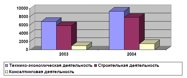 Как видно из рис. 3, показатель выручки от реализации по строительной деятельности вырос на 1996 тыс. руб. в 2004 году по сравне6нию с 2003 годом или на 34 %.