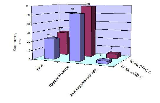 Такая двухуровневая система уже формируется в России по карточкам «Виза». Крупные коммерческие банки, вступившие раньше других в эту платежную систему, наращивают количество выпущенных карточек не только за счет своих собственных клиентов, но и благодаря привлечению к сотрудничеству других банков, не имеющих возможности или намерения самостоятельно эмитировать международные карточки.