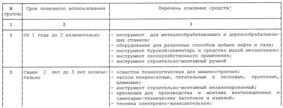 Амортизируемые основные фонды объединяются в следующие амортизационные группы[1]: