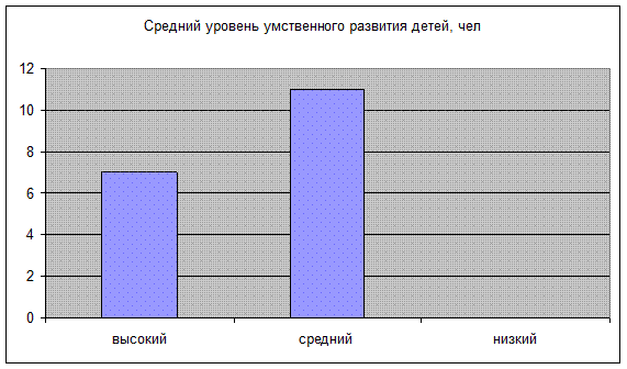 Методики исследования умственных показателей здоровья детей в группе А позволили сделать вывод, что уровень умственного развития детей в группе А также выше, чем в группе Б. В группе А, в отличие от группы Б, нет детей с низким уровнем умственного развития.