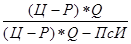 П = Прибыль = Вал. маржа – Пост. издержки = (Ц–Р) * Q – ПсИ. (3)