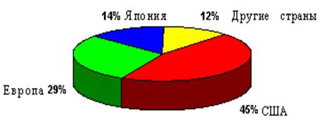 Рис. 3. Распределение 500 крупнейших ТНК по странам (в соответствии с рейтингом "Financial times" за 2003 год)