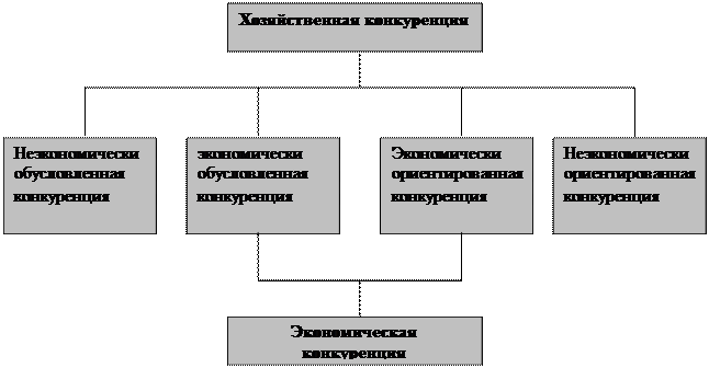Конкуренцию в сфере хозяйства не стоит отождествлять с собственно экономической конкуренцией, ибо в хозяйственной сфере переплетаются как экономические, так и неэкономические действия. Поэтому понятие хозяйственной конкуренции мы определяем более широко по сравнению с экономической. Для их разграничения мы выделим экономически обусловленную и экономически ориентированную конкуренцию. Экономически обусловленная конкуренция осуществляется экономическими (ненасильственными) методами, т.е. на основе состязания в экономической эффективности, но при этом может быть ориентирована на цели неэкономического (или опосредованно экономического) свойства – повышение рейтинга фирмы или личной известности ее руководителя, наращивание «политических мышц» или утверждение новых культурных образцов потребления. Достижение этих целей может впоследствии привести и к экономическому успеху, но на него непосредственно эти действия не направлены.