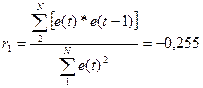 · независимости уровней ряда остатков по d-критерию (критические значения d1=1,10 и d2=1,37) и по первому коэффициенту автокорреляции при критическом значении r1=0,32;