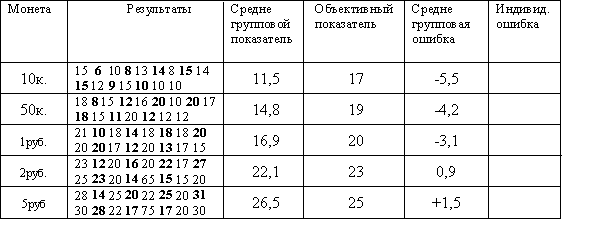 Испытуемым предлагается оценить в мм диаметр монет разного достоинства (1 руб.,