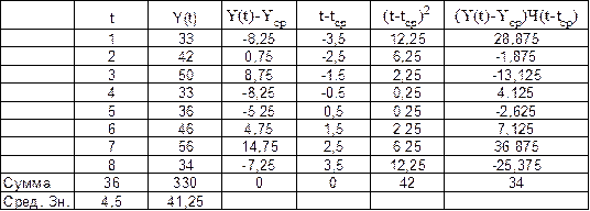 - независимости уровней ряда остатков по d-критерию (критические значения d1=1,10 и d2=1,37) и по первому коэффициенту автокорреляции при критическом значении r1=0,32;
