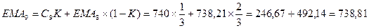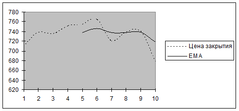 Даны цены открытия, максимальная, минимальная и закрытия) за 10 дней. Интервал сглаживания принять равным пяти дням.