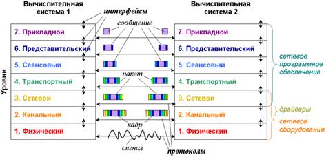 Рис. 2 Модель взаимодействия открытых систем ISO/OSI.