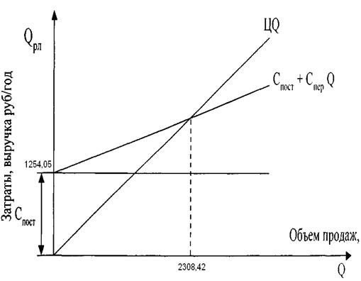 Можно проследить комплексное влияние цены, переменных и постоянных затрат на изменение точки безубыточности при разнонаправленности изменении перечисленных факторов. Одновременно из графика можно установить пороговое значение переменных, при превышении которых точка безубыточности лишается смысла, поскольку стремится к бесконечности.
