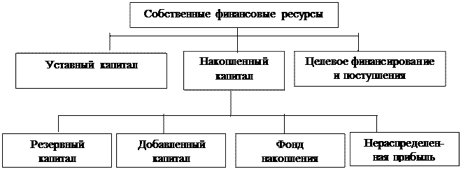 Основным источником финансирования является собственный капитал. В его состав входят уставный капитал, накопленный капитал (резервный и добавленный капиталы, фонд накопления, нераспределенная прибыль) и прочие поступления (целевое финансирование, благотворительные пожертвования и др.) (см. рис. 1.1).