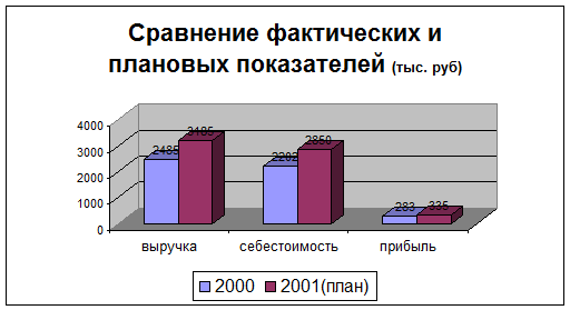 Из данных таблицы 1 для построения точки безубыточности мы можем сказать, что плановый запас финансовой прочности на 2001 год почти в 4 раза больше чем в 2000 году.