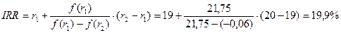 Смысл расчета этого коэффициента при анализе эффективности планируемых инвестиций заключается в следующем: IRR показывает максимально допустимый относительный уровень расходов, которые могут быть ассоциированы с данным проектом. Например, если проект полностью финансируется за счет ссуды коммерческого банка, то значение IRR показывает верхнюю границу допустимого уровня банковской процентной ставки, превышение которого делает проект убыточным.