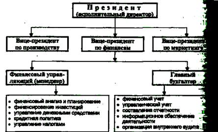 В США основным лицом, отвечающим за организацию финансового менеджмента корпорации, является вице-президент по финансовым вопросам. Он, как правило, входит в состав Совета директоров компании (рис. 6).