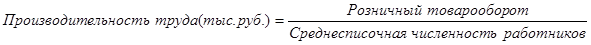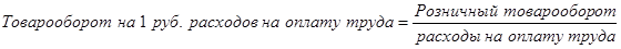 Показатель эффективности трудовой деятельности также может быть рассчитан как отношение объема розничного товарооборота к сумме расходов на оплату труда:
